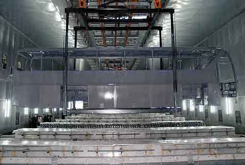 較為優(yōu)秀的設計是將輻射與傳導對流相結(jié)合,即將入口端長度為烘干室總長度的30-40%的一段區(qū)域設計為微弱空氣對流的輻射加熱區(qū),其余是對流烘干段。所有烘干室的開口都要有強制的熱空氣氣幕,以阻止熱量的散失及灰塵的進入。其次,熱空氣在進入烘干室之前應有多道過濾系統(tǒng),以減少塵埃。