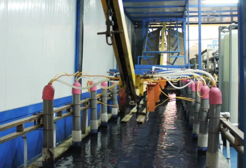 2. 工件入槽部位少布置陽極,緩解入槽時的電解反應。