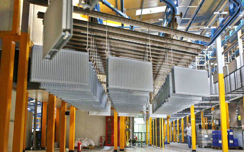 待電泳工件的大小與掛件數(shù)量是確定分布的前提。工件絕不能互相靠得太近,更不能互相遮蓋。在保證導(dǎo)電性的前提下,要讓待電泳工件表面電流分布盡量均勻,氣體排出暢通,電泳液在工件內(nèi)沒(méi)有存留,可以方便地排出。保證工件在前處理及泳后噴淋室的噴淋區(qū)域之內(nèi)能夠進(jìn)行有效的噴淋。另外在設(shè)置工件分布時(shí)要考慮作業(yè)人員裝掛、取卸方便。