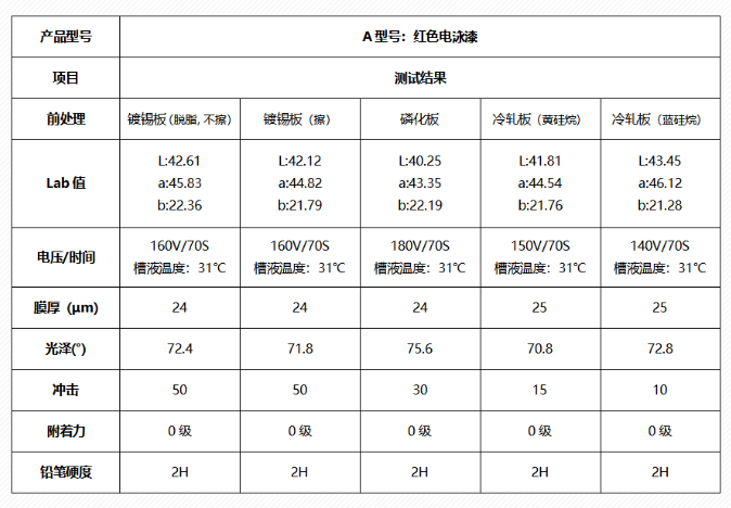 備注:以上前處理類型選用市場(chǎng)上最常見、使用頻率較高的型號(hào)。(A型號(hào)磷化、B型號(hào)硅烷)