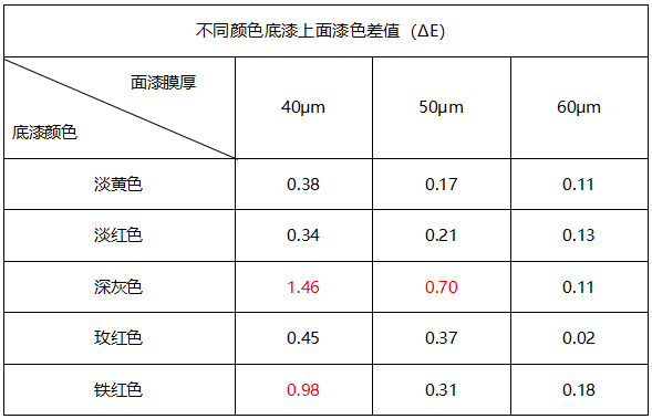 異色系底漆不同顏色對(duì)配套面漆的影響
