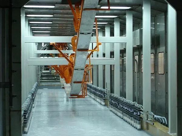 電泳涂裝是把工件和對應的電極放入水溶性涂料中,接上電源后,依靠電場所產(chǎn)生的物理化學作用,使涂料中的樹脂、顏填料在以被涂物為電極的表面上均勻析出沉積形成不溶于水的漆膜的一種涂裝方法。而超濾及超濾器在電泳涂裝過程中有著重要的作用,更好的使用推廣ED-RO新技術可以進一步提高電泳涂料和水資源的利用率,大幅減少電泳污水排放。正確有效地使用和保養(yǎng)超濾設備,提高超濾系統(tǒng)的利用率。電泳后使用超濾清洗(UF)的目的是除去附著在電泳涂膜表面的浮漆,提高涂膜外觀質量和回收電泳涂料。 . . 超濾(簡稱UF) 是一種膜分離技術。它是以UF 膜兩側壓力差為動力,以機械篩分原理為基礎的一種溶液分離過程。使用壓力通常為(0.1~0.6)MPa,分離孔徑1nm~0.1μm,截留分子量500~1000000 左右。在電泳漆UF過程中,當電泳漆接觸到UF膜時,溶液和無機鹽可通過UF膜,類似樹脂和顏料大小的分子則無法通過,被滯留在漆液中,輸送回電泳槽。 . . 超濾是為清除電泳漆工作液中雜質離子及有效地閉路帶入的陽離子及陰離子污染源,保證漆液穩(wěn)定及漆膜完整。超濾(UF)是一種能夠將溶液進行凈化、分離或者濃縮的膜透過分離技術,超濾過程可以理解成與膜孔徑大小相關的篩分過程。以膜兩側的壓力為驅動力,以超濾膜為過濾介質,在一定的壓力下,當溶液流過膜表面時,只允許水、無機鹽及小分子物質透過膜,而組織水中的懸浮物、膠體、蛋白質和微生物等大分子通過,以達到溶液的凈化、分離與濃縮的目的。超濾是一種連續(xù)的、低壓操作的。 電泳漆槽液在壓力差的推動下通過超濾器,側邊超濾膜過濾,透過液流至超濾槽,超濾液大約30%的循環(huán)是來自電泳輔槽,然后返回電泳槽,漆液進入超濾系統(tǒng)最小的進漆量為10倍的設計產(chǎn)水量,最佳進料量是20倍的設計產(chǎn)水量。 . . 3.2 正常啟動及操作步驟 1)確認出口管線上沒有壓力,關閉漆供給閥門、清洗入口閥門、清洗出口閥門、透過液到儲槽及清洗槽的閥門; 2)打開漆循環(huán)閥門、透過液排出閥門、所有壓力表隔離閥門; 3)打開超濾泵軸封冷卻液進出口閥(壓力為0.2MPa); 4)開動漆的供給泵; 5)微開漆入口以緩慢將漆注入系統(tǒng); 6)緩慢打開漆入口閥直到基線上的壓力達到0.15MPa,后打開泵。 7)緩慢調節(jié)入口和出口閥直至壓差達到0.2MPa,入口和出口的壓力分別為0.35MPa和0.15MPa。 8)檢查膜是否泄漏若仍存在滲漏,應及時更換O型密封圈和膜組。 9)透過液排出時間至少應為10min。 10)打開透過液到存儲裝置的閥門,然后關閉分離液排出閥。 3.3 超濾使用中的注意事項 1)元件和外殼及配件應輕拿輕放,嚴防磕碰損傷; 2)突然停電或其它意外停機時間不得超過2h;如停機時間過長,應立即清洗膜元件,以免漆液沉積堵塞膜元件; 3)詳細記錄清洗系統(tǒng)及電泳系統(tǒng)各項參數(shù),便于預防和解決問題; 4)過濾器進出口壓力差應<0.08MPa ,若>0.08MPa ,應及時更換過濾袋,過濾精度小于等于25μm ; 5)透過液閥門關閉時不得運行超濾系統(tǒng); 6)排出閥開啟的情況下切勿啟動泵,以避免壓力對膜損害; 7)禁止大透過量濾液,應在指定透過量下調節(jié)開啟閥。 8)盡量減少金屬預處理環(huán)節(jié)的化學劑帶入現(xiàn)象,進入電泳槽之前的最后一次沖洗的滴水電導率應低于10us/cm。 電泳后使用的超濾清洗系統(tǒng)(UF)是除去附著在電泳涂膜表面的浮漆,提高涂膜外觀和回收電泳涂料。所用設備與前處理磷化后的水洗設備相同,最終用純水洗的目的是除去雜質離子,防止產(chǎn)生污染斑痕涂膜弊病。為防止清洗后不充分,縫隙部位產(chǎn)生二次流痕弊病,需要有全浸式的水洗工序。UF洗液一般進行2-3次,以降低涂料的帶出量,例如:車體面積為80-100㎡,每臺車身帶出固體份為20%槽液7-10L,當?shù)谝坏浪匆旱墓腆w份為4%-5%時則第二道水洗可能達到1%以下,新鮮UF液的固體份一般在0.5%以下,當采用ED-RO裝置(即UF液經(jīng)反滲透裝置凈化,除掉雜質離子和固體份)場合,用UE-RO液代替純水進行最終純水洗,實現(xiàn)真正的全封閉式電泳后清洗,可大幅降低電泳污水的排放量和顯著的提高電泳涂料的利用率。清除電泳漆工作液中雜質離子及有效地閉路帶入的陽離子及陰離子污染源,保證漆液穩(wěn)定及漆膜完整。 在電泳漆系統(tǒng)中,超濾所產(chǎn)生的透過液中含水和漆的助溶物質。透過液用于漆的沖洗環(huán)節(jié),這種含回路循環(huán)系統(tǒng)可以彌補漆的損失。透過液可以降低漆液的電導率。 . 對超濾系統(tǒng)要嚴格按照工藝要求進行操作,超濾系統(tǒng)更換超濾膜使用一段時間后出現(xiàn)了故障:過濾器過濾袋堵塞,超濾膜流量壓差達不到工藝要求,所以針對出現(xiàn)的以上問題,對操作工嚴格按照操作要求、工藝參數(shù)進行清洗的過程中實施跟蹤,從而找到原因,排除故障。以優(yōu)化工藝,改善工藝,來提高產(chǎn)品質量。 4.1 注意事項 1)膜組件透過量下降至正常值的 70%時,必須進行清洗,如果延誤了清洗,會導致堵塞,嚴重時將難以恢復原流量; 2)超濾系統(tǒng)為防膜元件堵塞配置了精密過濾器,精度為25μm,應嚴格按工藝要求更換過濾袋,并定期清理過濾器及管道; 3)因故障造成意外停機,應及時按規(guī)定進行清洗,以防膜件堵塞; 4)嚴格按操作規(guī)程運行,詳細記錄UF系統(tǒng)運行參數(shù),以備查閱。 4.2 清洗