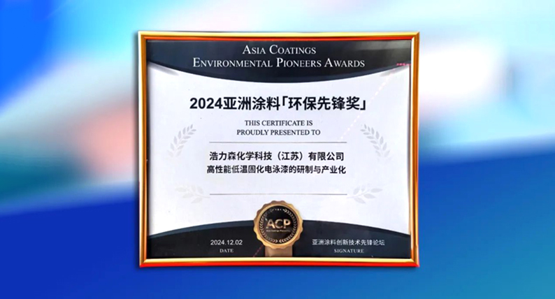 浩力森榮獲“2024亞洲涂料行業(yè)環(huán)保先鋒獎(jiǎng)”
