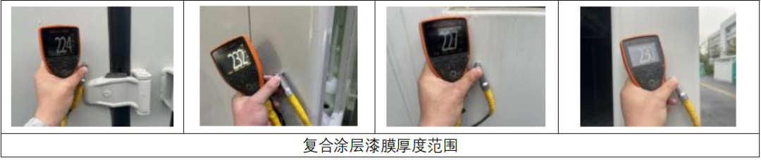 2. ISO12944 技術(shù)標(biāo)準(zhǔn) C4 要求:環(huán)氧底漆 150 μm(現(xiàn)場實(shí)際噴涂膜厚約 170 μm),二次成膜單槍干膜厚度約 100 μm(涂層間隔約 10min),單次成膜厚度>200 μm(一次成膜底部起槍一上一下須達(dá)到漆膜厚度);聚氨酯面漆 50 μm(現(xiàn)場實(shí)際噴涂厚度 40-60 μm),一次成膜底部起槍一上一下須達(dá)到漆膜厚度;