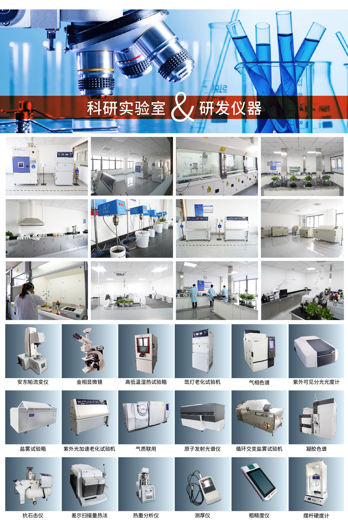 涂層平臺(tái):負(fù)責(zé)針對(duì)各類涂層材料的理化性能全面測(cè)試,包括耐循環(huán)交變腐蝕、耐久性、冷凝水、高低溫、耐石擊等各類檢測(cè)項(xiàng)目。